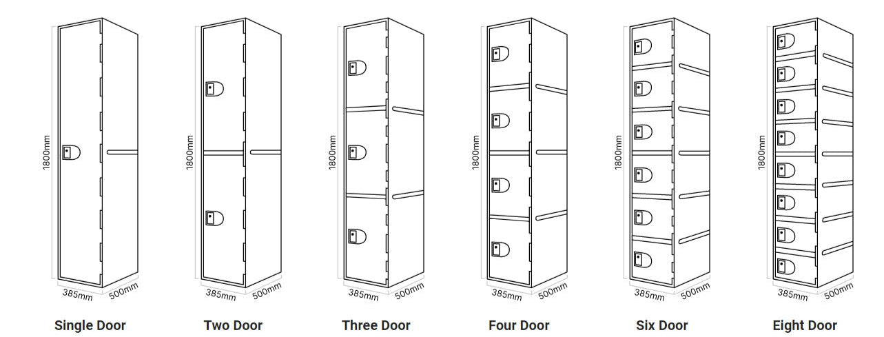 Each of these columns is available in 1,2,3,4,6 and 8-door configurations to accommodate varying student needs. The Heavy Duty Plastic lockers are a fully modular system, allowing different combinations of doors and colours to be joined to suit your needs. Their robustness and size also enable these locker units to be utilised as partitions to divide spaces as required.